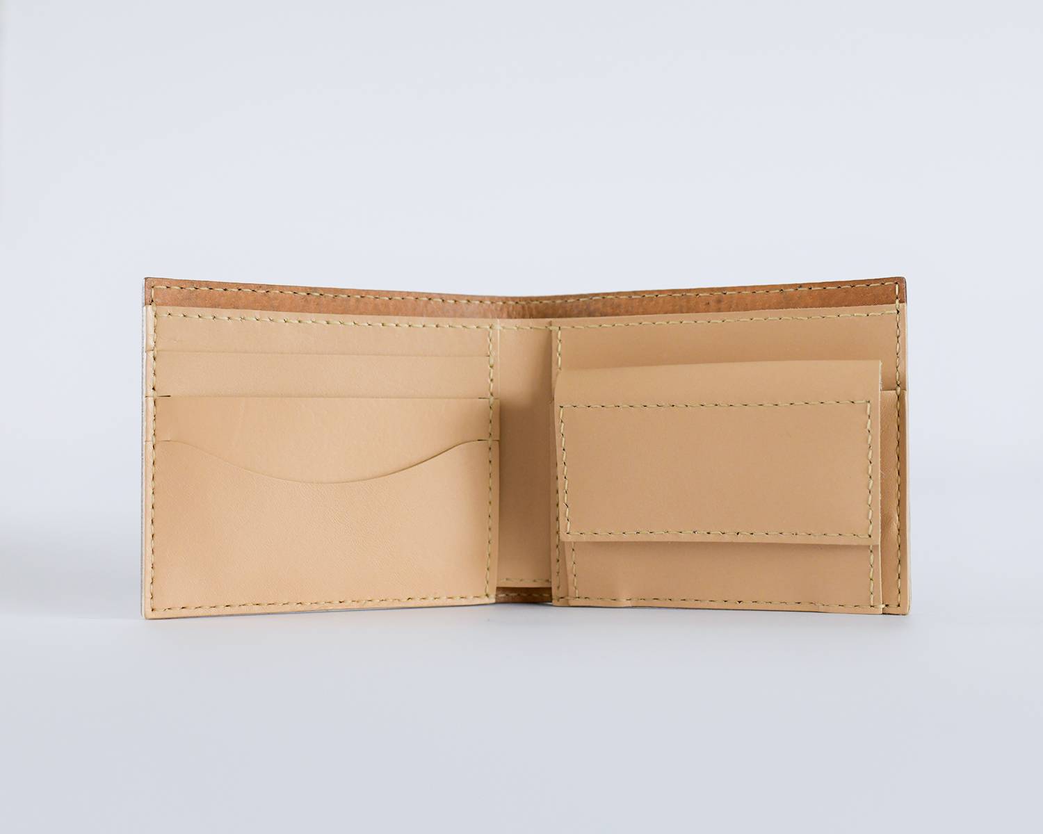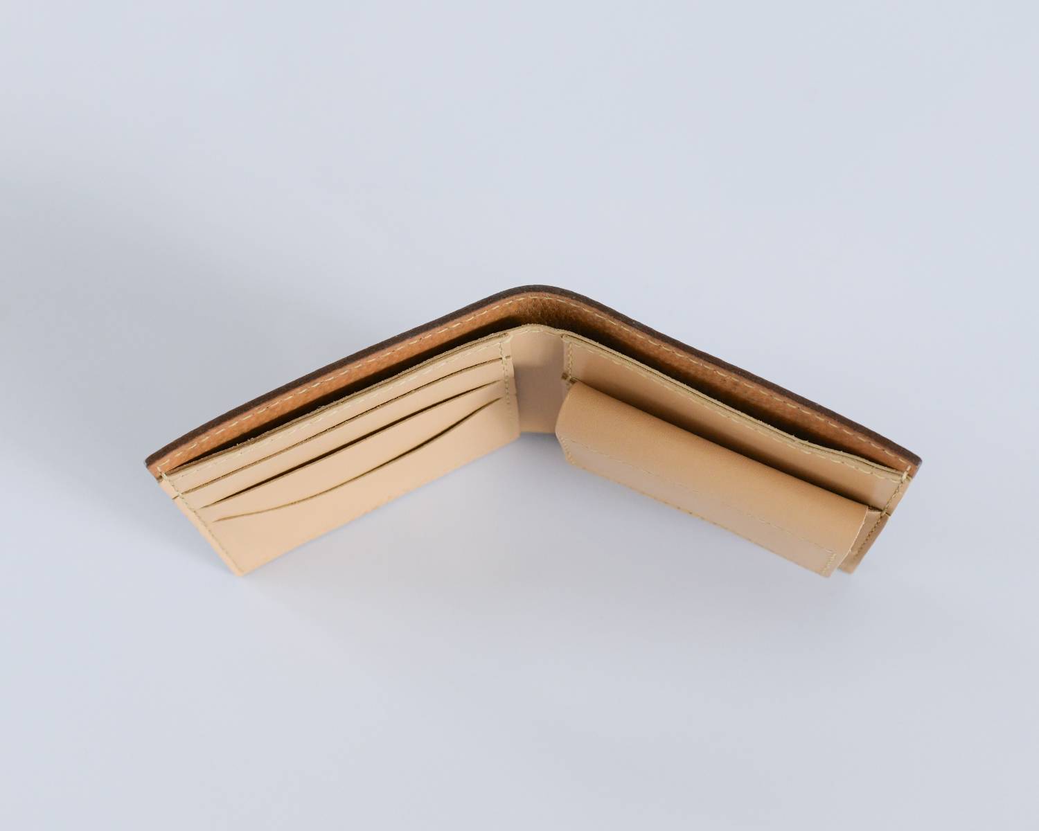 財布の本体(外側)はランドセルのかぶせを使って制作し、内側の小銭入れとカードケース部分は、こちらでご用意する本革を使って制作致します。(色はベージュのみ)